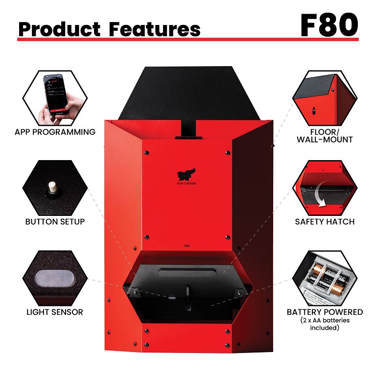 Hranilnik deluje preko tehnologije bluetooth oziroma preko pametnega telefona, prilagaja delovanje glede na svetlobo in na časovnik, v okviru katerega ga lahko nastavite na tedenski urnik. Na primer, lahko se odpre od ponedeljka do petka med 8. in 10. uro zjutraj, v soboto in nedeljo pa lahko deluje po drugačnem urniku. Na ta način se lahko v tednu hrani 8 kokoši.