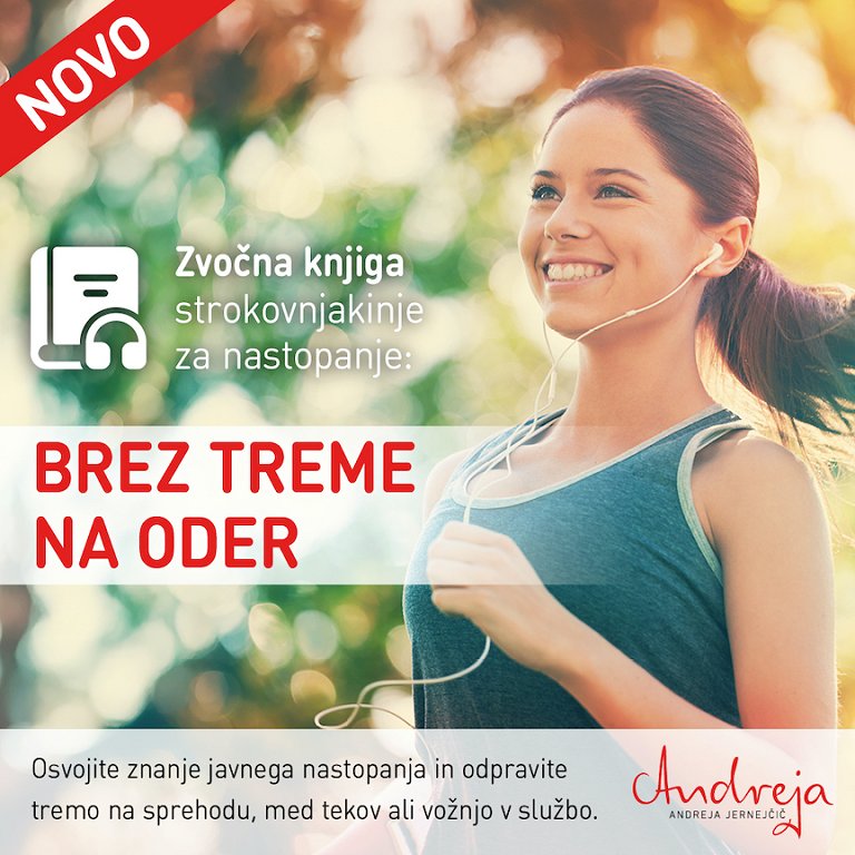 Praznično obdobje prinaša novoletne priložnosti za nastope in govore pred sodelavci, kar je lahko za mnoge velik izziv. Prav zato je mag. Andreja Jernejčič, strokovnjakinja za komuniciranje, piar in javno nastopanje, sicer tudi avtorica devetih knjig (sedmih tiskanih in dveh zvočnih), izdala svojo tretjo zvočno knjigo Brez treme na oder. V tej knjigi boste spoznali vse osnove priprave na uspešen nastop – od priprave vsebine, oblikovanja jasnega, dinamičnega in zanimivega govora, do pravilne uporabe neverbalne komunikacije. Osvojili boste, kako se ustrezno pripraviti in kako pravilno vaditi za samozavesten nastop.