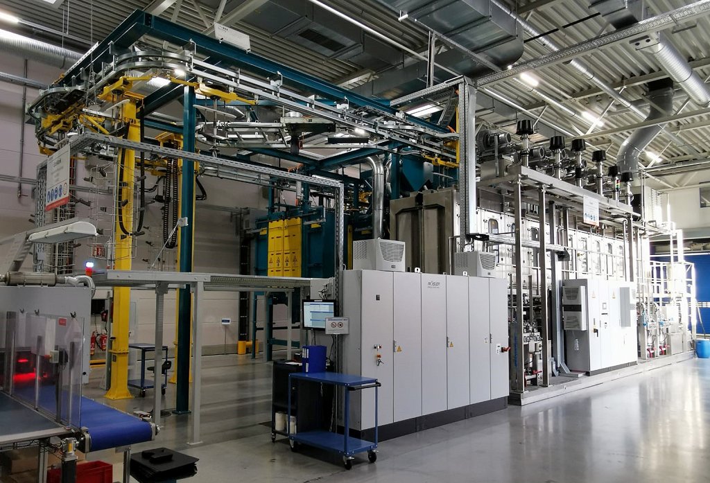 Foto: Protočna mašina za peskarenje RHBD 13/18-So s rotacionim kukama je idealno rešenje za peskarenje velikih količina kućišta za kontrolne uređaje u električnim vozilima, bez rizika od krivljenja obradaka.