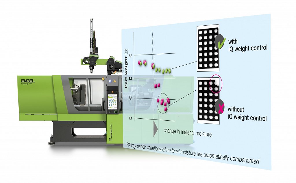 To identify and automatically compensate for fluctuations in environmental conditions and raw materials, for example, ENGEL will utilise three assistance systems at the Interplastica event: iQ weight control, iQ clamp control and iQ flow control. Visitors to the trade show will be able to track how rejects are thereby actively avoided on the live display of the CC300 control unit of the injection moulding machine.