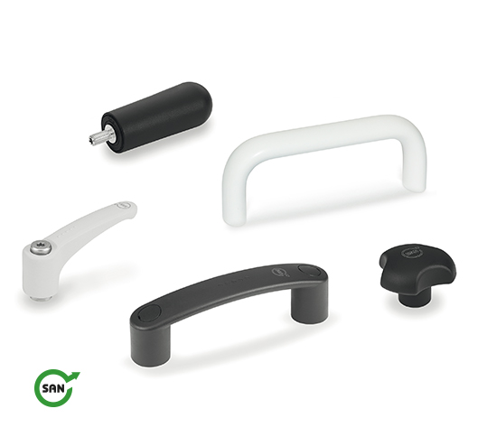 Elesa+Ganter SAN LINE components are destined for medical and hospital equipment, rehab and disability aids, machines in pharmaceutical sector, urban and public fittings.