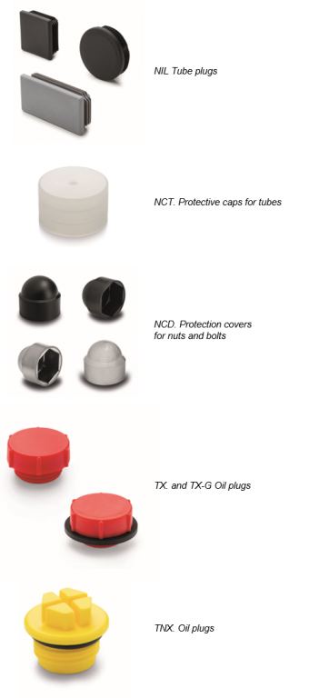 Simple and intuitive products, but also very useful thanks to their ability to effecAtively satisfy a wide range of applications to protect the ends of tubes and bolts from shocks, dust or humidity, or when it is necessary to prevent the leakage of liquids or the penetration of foreign bodies.