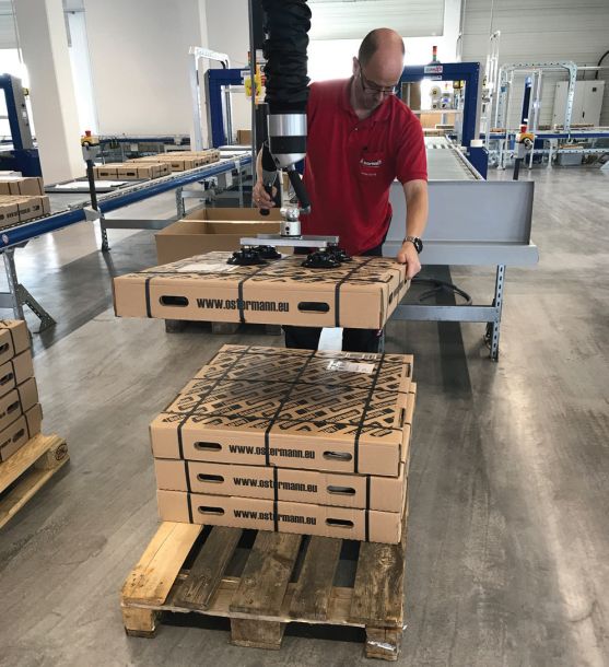 Stoga je nužna besprijekorna i učinkovita logistika. Do sada su obrubi bili zamotani u foliju, a robot je pakirane proizvode podigao s transportne trake i slagao ih na paletu. No to rješenje nije najfleksibilnije, a plastična folija nije ekološki prihvatljiva i nije privlačna na pogled. Stoga su tražili drugo rješenje za brzu obradu narudžbi, koje bi ujedno zaposlenicima oduzelo težak fizički rad i osiguralo sigurnost na radu.