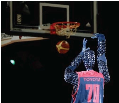 Robot, kojem su nadjenuli ime Cue, u slobodno vrijeme razvili su inženjeri tvrtke Toyota. Posla su se prihvatili čisto od počet-ka, jer nitko među 17 ljudi nije imao iskustva s takvom vrstom tehnologije. Voditelj tima Tomohiro Nomi je rekao, da je htio sebi i suradnicima samo postaviti novi izazov. Robotu obukli dres tima Alvark Tokyo, čiji je glavni pokrovi-telj tvrtka Toyota, te su ga doveli na parket košarkaške dvorane. Tijekom vježbanja pokazao se izvrsnim, jer je pogodio upravo sve mete – za usporedbu, profesionalni košarkaš spomenutog tima je tijekom zagrijavanja s iste udaljenosti pogriješio dva puta.