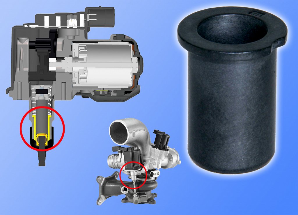 Te puše delujejo brez maziv, izpostavljene so visokim temperaturam in agresivnim snovem v izpušnih plinih, vendar delujejo z minimalno obrabo in z minimalnim trenjem. Vodilna puša batnice iz Vespela omogoča doseganje velikih hitrosti aktuatorja in natančen nadzor nad zviševanjem tlaka, kar omogoča visoko odzivnost in nizko porabo goriva pri zaustavitvah. Ker je nameščena na izhodni strani aktuatorja, puša zagotavlja linearno vodenje za vzvod, ki odpira obtočne kanale turbo polnilnika in absorbira lateralne sile preklopnega mehanizma. Puša je v neposredni bližini motorja, samo nekaj cm od turbo polnilnika, ki se lahko segreje do 1000 °C, zato mora prenesti temperature do 140 °C. Zaradi bližine kompresorja je izpostavljena nenehnim vibracijam, pa tudi brizgom in curkom vode, kontaminirane s prahom, oljem, mastjo in soljo. Posebni material Vespel® TP, ki je optimiziran z različnimi polnili, ustreza vsem tem zahtevam, ima dobre mehanske lastnosti in odlično dimenzijsko stabilnost.