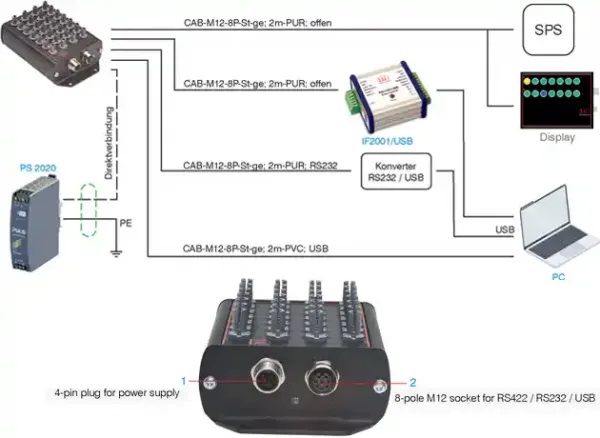 Za nastavitve vseh parametrov LED analizatorja lahko uporabite brezplačno programsko opremo senzorTOOL podjetja Micro-Epsilon. Uporabite jo tudi za sinhrono odčitavanje in beleženje izmerjenih vrednosti za vse merilne točke oz. kanale. Vgrajen vmesnik RS422 vam omogoča enostavno povezljivost z drugimi procesnimi krmilnimi enotami. Na voljo sta tudi vmesnika USB in RS232.