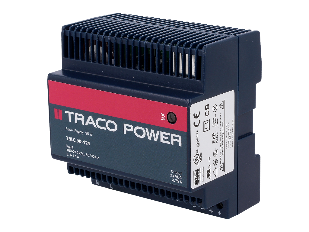 Največji napajalniki iz serije TBLC so izdelki z močjo 90 W in izhodno napetostjo 12 V i 24 V (DC). Primerni so zlasti za večje sisteme industrijske avtomatike, ki zahtevajo več električne energije. Podobno kot prej opisani modeli se tudi te naprave napajajo z omrežno napetostjo iz območja od 85 V do 264 V in zagotavljajo tok do 3,75 A v različici z napetostjo 24V oziroma 7,5 A v različici z napetostjo 12 V. Upoštevati je treba tudi, da se lahko napetost tudi v teh največjih modelih v omejenem območju nastavlja.