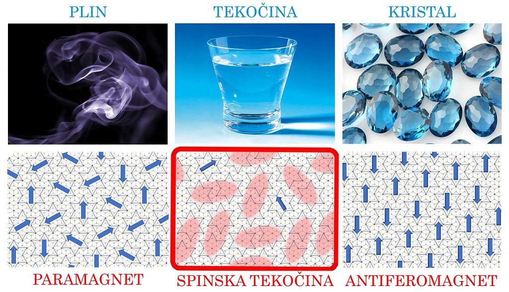 Prvi je spinsko tekočino napovedal Nobelov nagrajenec P. W. Anderson že pred več kot 40 leti, ko je raziskoval nenavadne magnetne lastnosti plastovitih kristalov TaS2. Skupina slovenskih fizikov na Institutu Jožef Stefan ter Fakulteti za matematiko in fiziko Univerze v Ljubljani je odkrila, da se elektronski magnetni momenti, ki so lokalizirani na zvezdah Ta, ne uredijo niti pri temperaturi ‒273,08 °C in da dejansko tvorijo novo stanje visokotemperaturne kvantne spinske tekočine. Pri tem stanju je še posebej zanimivo to, da pri presenetljivo visokih temperaturah (pod ‒93 °C) kaže kvantno prepletenost na daljavo – z drugimi besedami, makroskopsko kvantno stanje, podobno kot superprevodnost. To odkritje odpira povsem nove priložnosti za razumevanje tega enigmatičnega magnetnega stanja in za razvoj novih kvantnih tehnologij.
