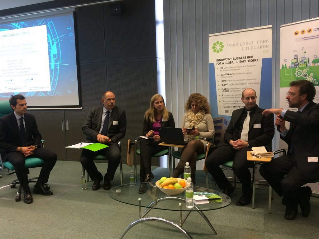 Osrednji del konference je potekal v obliki okrogle mize, na kateri so sodelovali Peter Wostner (SVRK), dr. Aleš Hančič (TECOS), Iztok Lesjak (Tehnološki park Ljubljana), Giacomo Copani (ITIA CNR-Lombardy), Valentina Pinna, (Vanguard iniciativa) in Maja Ferlinc (Slovensko gospodarsko in raziskovalno združenje SBRA). Razpravljali so o vplivu in priložnostih Vanguard iniciative za podjetja, posredniške organizacije in odločevalce.