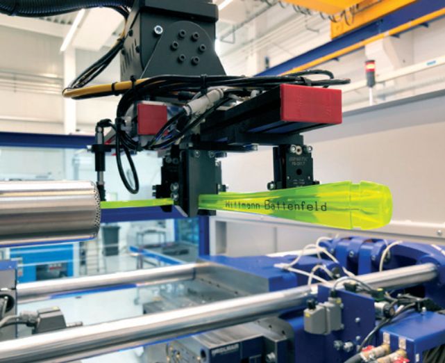 Pri tej aplikaciji se obešalniki oblikujejo na električni brizgalki WITTMANN BATTENFELD EcoPower 160/750 z uporabo postopka GIT AIRMOULD (brizganje s pomočjo plina). Za rokovanje s kosi skrbi robot W918. Roboti WITTMANN iz serije W918 so na voljo z različnimi dolžinami gibov; kot standard se pogosto uporablja kombinacija 620/1200/2000 (odvzem iz orodja/vertikalni/horizontalni hod). Model W918 za to aplikacijo je opremljen tudi z vrtljivimi servo osmi, kar zagotavlja dodatni zasuk za 270° okoli navpične osi in 180° okoli vodoravne osi, kar zagotavlja dodatno svobodo.