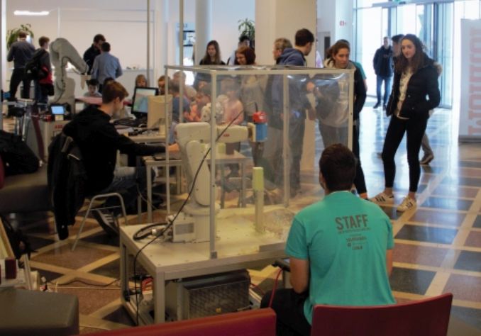 Od ponedeljka do četrtka je bilo v avli fakultete razstavljenih osem robotskih aplikacij, ki so jih načrtovali in predstavili študentje. V dopoldanskem času so si jih ogledale skupine vedoželjnih dijakov, osnovnošolcev ter navdušenih predšolskih otrok. Nekateri pa so sodelovali tudi na aplikacijah in se naučili več o programiranju industrijskih robotov. V popoldanskem času so se študenti, ki so se predhodno prijavili preko spletne strani dogodka, spoznali z delovanjem robotov ter se tudi sami preizkusili v vodenju in programiranju v njihovem operacijskem okolju. Preko dneva so nas obiskali tudi profesorji, študenti, strokovnjaki iz industrije in drugi, ki jih zanima robotika. Pri načrtovanju aplikacij smo imeli v mislih, da z vsako aplikacijo prikažemo drugačen način uporabe robotov. Uporabili smo različne tipe robotov – od kolaborativnih robotov do industrijskih robotskih manipulatorjev.
