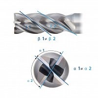 Nejednolika podela zuba i promenjiv ugao spirale smanjuju vibracije pri glodanju. Na obratku se stvara znatno manji greben.