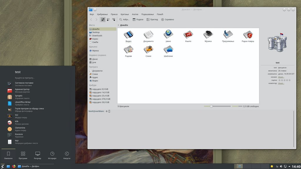 Ako ste novajlija na Linuksu, instalacioni proces je jednostavan i traje kraće od 10 minuta, a ovde možete pročitati kako se pripremaju mediji za instalaciju. Grafički interfejs instalacionog postupka podrazumevano je podešen na ćiriličnu opciju, dok će upravljanje tastaturom biti na latinici. Ako do sada niste videli kako izgleda instalacija, možete je pogledati u slikama, a dostupan je i video materijal. Po instalaciji, Serbian će zauzeti nešto iznad 5 GB, tako da bi bilo poželjno da mu prilikom particionisanja, za udobno delovanje odredite 12 do 15 GB.